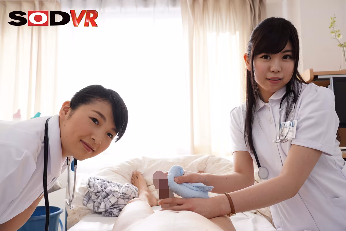 You haven’t been feeling well and are in the hospital when your two sexy, Asian nurses come in to give you a sponge bath. As they wash your body, the two spend extra time on your cock, getting you rock hard and washing your shaft clean. After using a washcloth on your dick, the girls decide to use their mouths to make certain they get it fully cleaned. You have no idea where the doctor is, but when the nurse jacks you off then sits on your cock and rides you, you find yourself feeling a whole hell of a lot better.