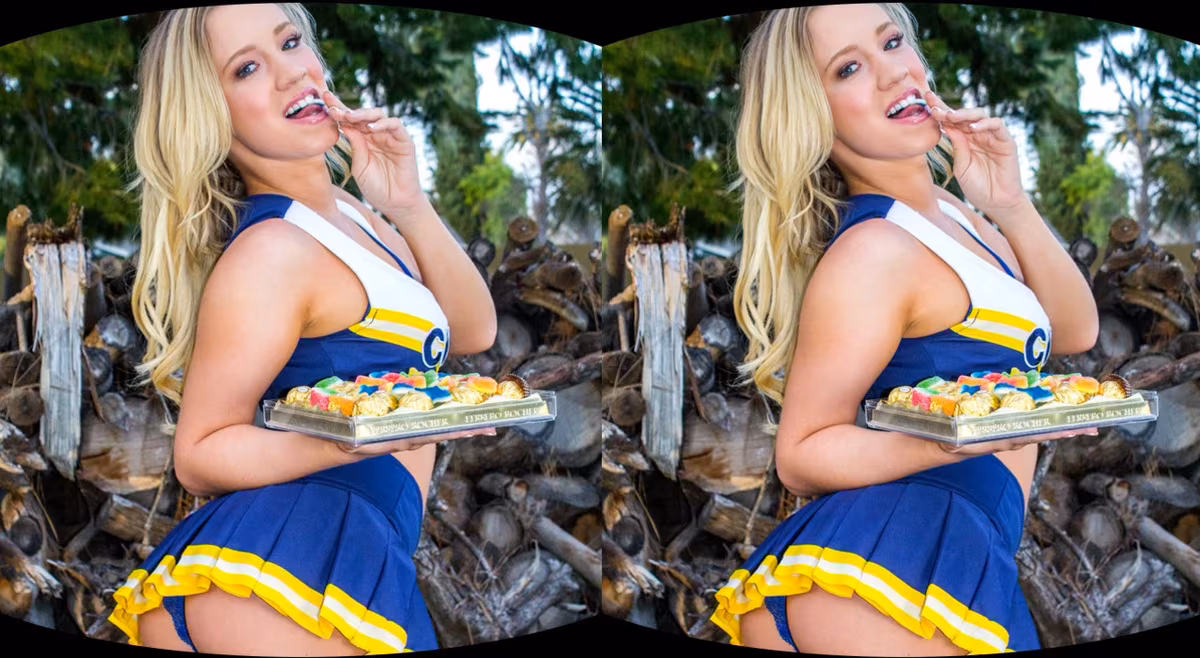 The battle for baked goods supremacy starts now! Cute girl scout, Carolina Sweets is at your doorstep selling you her cookies when rival cheerleader, Bailey Brooks tries horning in on her territory with her chocolates. Tempers flare and egos are bruised as neither girl wants to back down. Oh, it's fucking on now!