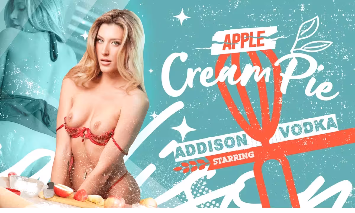 Your wife, Addison, welcomes you warmly in the kitchen as you arrive home early from work. The table is covered with apples, flour, and dough—she’s preparing a special surprise. But you have news of your own—you've been promoted! Addison insists this calls for a celebration—with a custard pie.