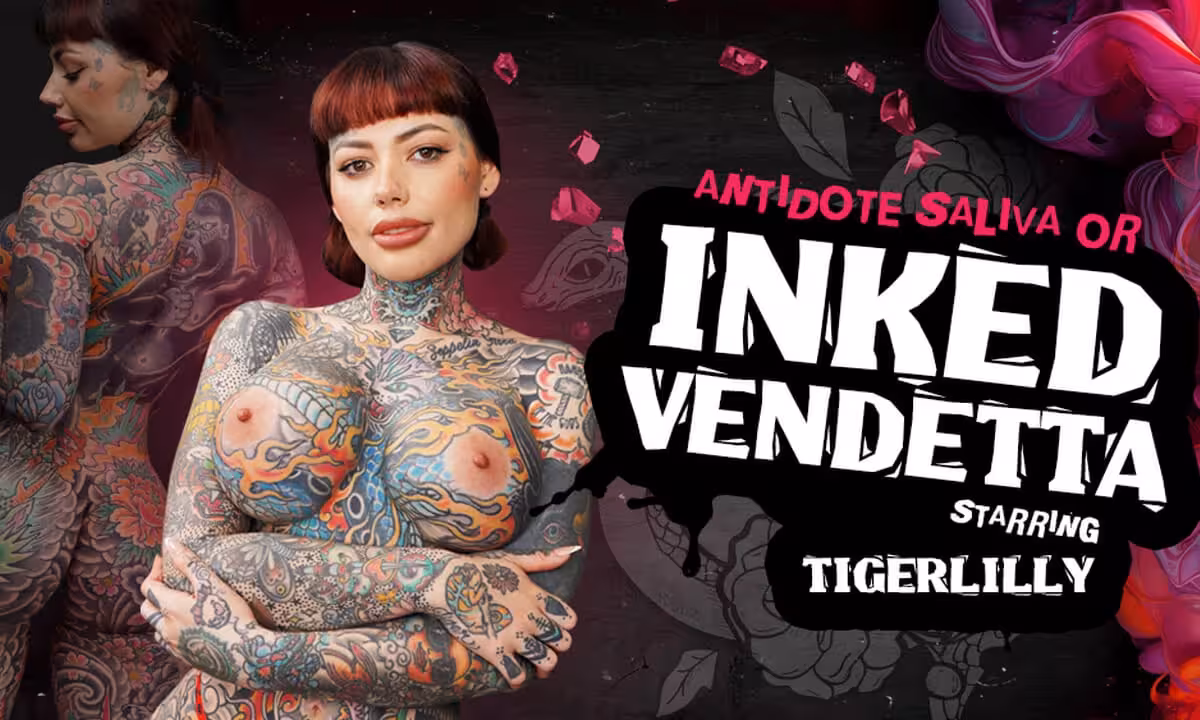 Check out the new 180 VR porn movie “Ink Vendetta” starring Tigerlilly! She’s finishing up a tattoo on your shoulder. You, the big mob boss, have been tough and did a great job. The girl feels relaxed, inquires about your recent time behind bars, and admits that the sound of the tattoo machine makes her horny. It reminds her of... Right! Her favorite vibe toy. Tigerlilly plays with it, taking off her leather top and showing you her big, squishy, inked titties. You go insane when she licks you with her split tongue, craving to feel it on your cock. She loves bad guys, so she’ll reward you with the deepest and sweetest blowjob ever. Don’t hold back and stick your big cock into that pussy, watching Tigerlilly bounce on you with that gorgeous body, and let the wildest 3D sex begin. Enjoy foot and armpit play as Tigerlilly licks you all over. Then she brings her tattooed butthole and tight pussy right to your face for eating out. Lie on the bed and fuck her so hard that she cums over and over again. Then drill that wet pussy in missionary and finally put it back inside in doggy, slapping her ass and watching it hit your hips in the hottest 8K porn scene. Give her a massive facial so she can tell you a secret.