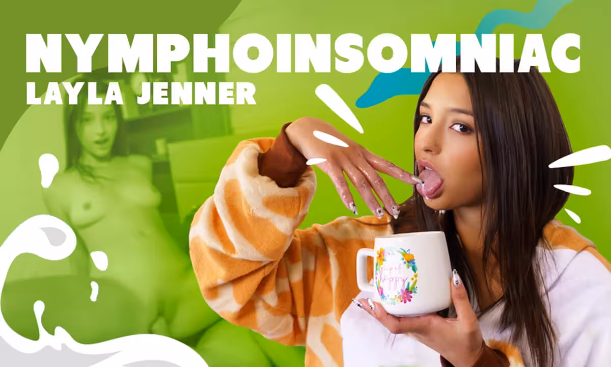 Cute Layla Jenner gets up because Ashley is snoring. Layla is Ashley's best friend staying at your house tonight. Layla, a stunning brown-eyed brunette dressed in pajama kigurumi, heads to the kitchen to pour herself a glass of milk. She finds you alone, feeling bored in the living room. You two should come up with something fun to do together. Layla knows you're rich and like to spoil girls. She admits that she has always had issues: a lack of attention, care, and affection - can you make up for them? Layla drops all the milk on her and has to undress. Her slim body arouses you, but both of you have to keep it a secret and not tell Ashley. Layla just needs your help to relax. Be good and assist her. Let her lick you everywhere and go lower. Layla is swallowing your cock and can’t stop pleasing you. She rides you front and back to make you feel how tight she is inside. Listen how sweetly she moans because of your big size. But please keep it down so Ashley can't hear you two! Your candy cock makes Layla naughty and horny, and you can’t refuse this hot baby anymore. Move to the bedroom and finally release yourself into your hottest fantasy - to fuck her best friend.