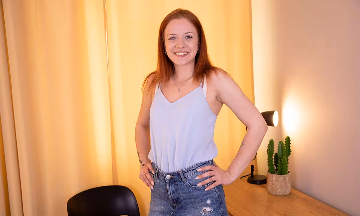 Redheaded hottie Stiffany Love is fire in bed! The sexy, amateur girl invites you to her bedroom where she puts on a sexy show striping her clothes off for you. Sitting down at her desk, she puts her homework away so she can put one leg up on the desk and the other spread wide, letting this college coed touch, tease, and finger her tight, shaved pussy. That’s how you take a break from your homework!