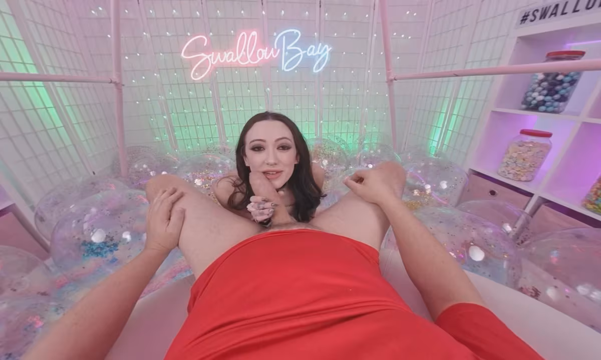Sexy skinny stripper Sage Hunter teasing big cock to swallow it whole and gag on cum