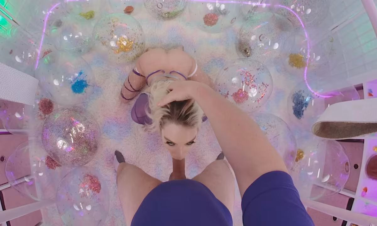 VR sexperience on sex swing with hot blonde pornstar Kenna James
