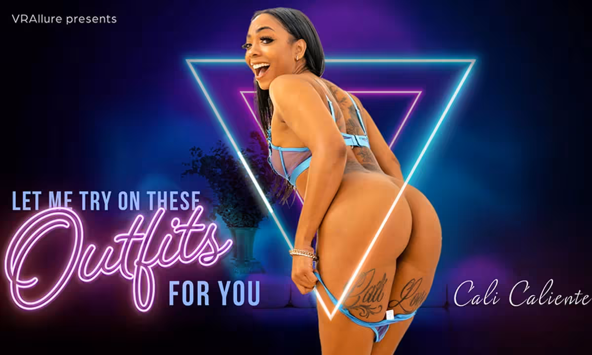 Cali Caliente found the perfect way to invite you into her hottest fantasies - using a Tommy Torso to give you a touch of POV action in the middle of her solo scene. She's got some sexy little outfits that she can't wait to show off for you, and once she's got you rock hard looking at her ebony body she wants to get a taste of that thick cock and then ride it cowgirl! Join Cali Caliente for some spicy fun with your Oculus Quest 2 / Quest, Valve Index, HTC Vive / Vive Pro, Rift S, or one of many other compatible VR headsets with the SLR app.