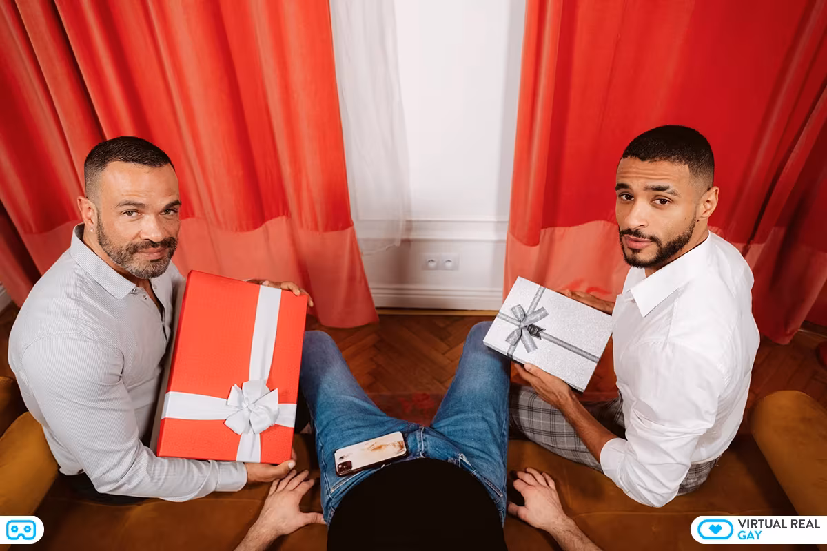 Nicholas Bardem and Radzzo came to your home with some presents for you. It’s Christmas time and they want to celebrate it with you although you forgot their presents. They are saying that they want you to give them a present… and that could be to do a threesome! Both of them start to get undressed and Nicolas drops to his knees to give you a blowjob while Radzzo watches him. Next, the last one is the one who wants to give you pleasure, so he takes your cock and introduces it inside his mouth. After this, Nicholas takes your cock and does the doggy position for Radzzo to fuck him from behind… and both of them look you in the eye while doing this… You are getting so horny! Next, they take turns to fuck you in cowboy style while the other touches him from behind. At the same time, you masturbate yourself, feeling so much pleasure... You can’t believe that is happening! The three of you will cum with great satisfaction.