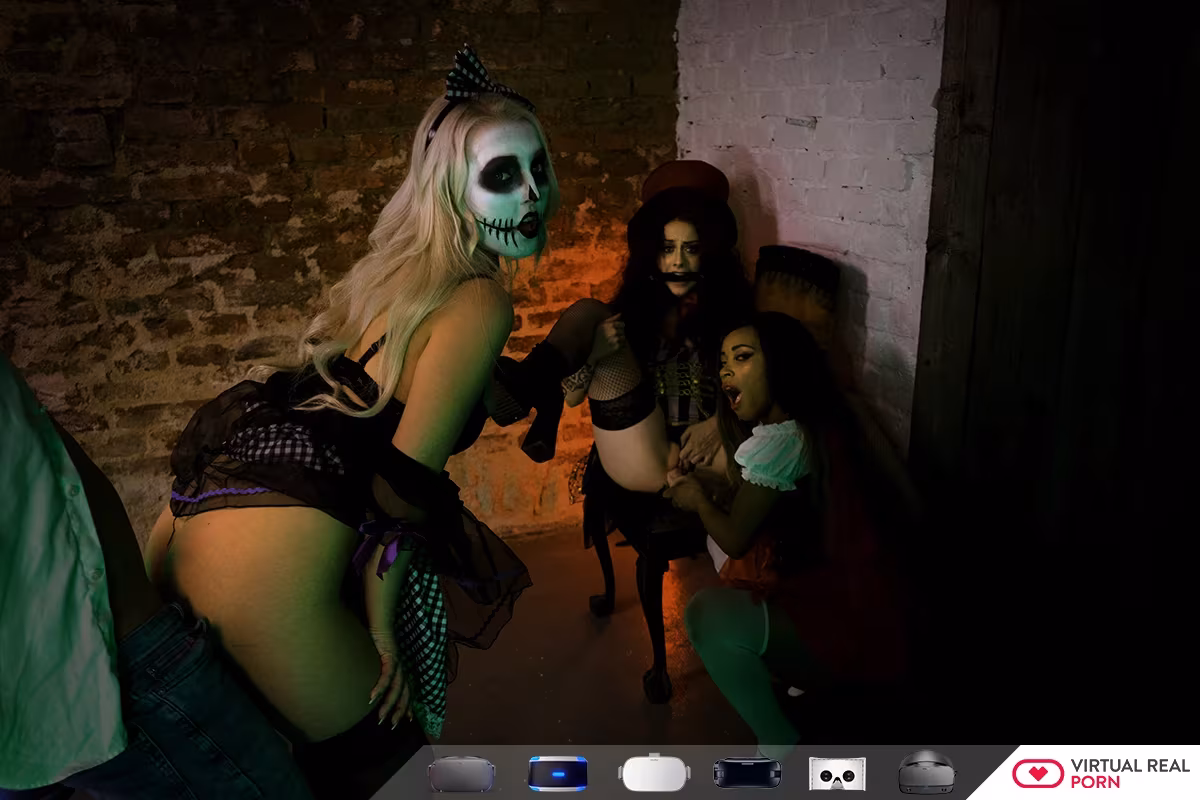 Halloween just got a whole lot sexier! Watch as VirtualRealPorn gives you the chance to take a sexy lesbian threesome to the next level when you get to slide right into the middle of all the spooky action. That's THREE incredible girls ready to obey your instructions (and their mistress!). Alessa Savage, Kiki Minaj, and Lovita Fate star together in this hardcore 3D porn and POV scene. You won't have to just watch the girls (but hey... that's great too!), you'll actually get to experience them turning all their sexy attention onto your rock hard cock and join in the fun!