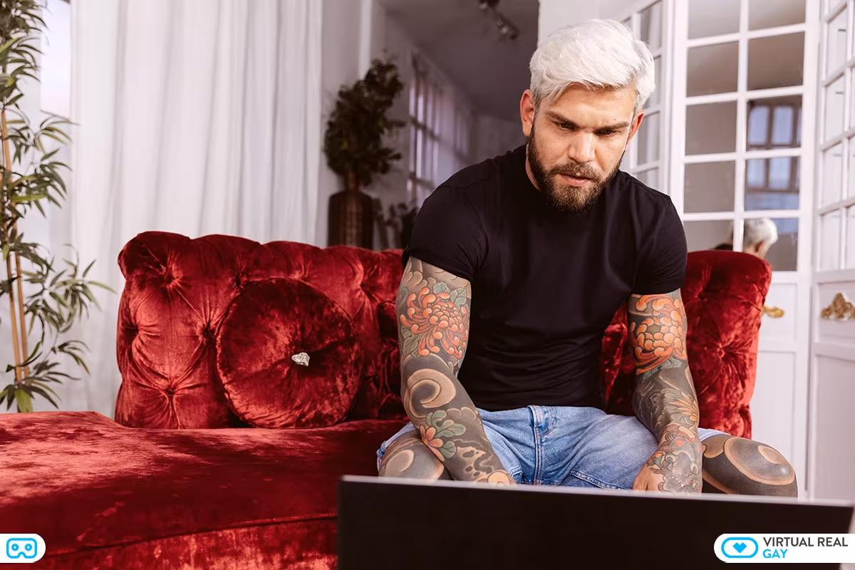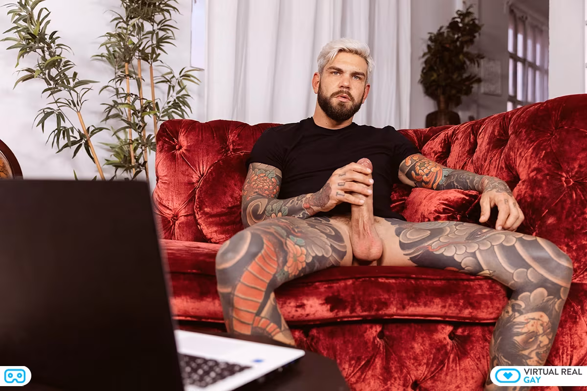 Juan Lucho begins his feet VR porn session seated on a luxurious red velvet sofa, live streaming to his growing audience. With his distinctive Spanish accent, he announces his intent to pleasure himself, enticing viewers who steadily join the intimate broadcast. As the chat floods with requests, he responds by removing his shoes to reveal his feet to the camera. Gradually, he peels off his t-shirt, caressing his chest with a confident touch. After slipping off his trousers, he stands and turns around, proudly displaying his sculpted ass. The comments urge him to add some oil, so he reaches for a prepared bottle and slicks his cock before beginning a slow, deliberate masturbation. Rising and continuing to stroke himself, he then sits back down, slapping his ass and teasing the camera with his balls. The erotic display culminates in a powerful climax, after which Juan Lucho thanks his viewers and bids them farewell, leaving a lasting impression of raw desire and connection.