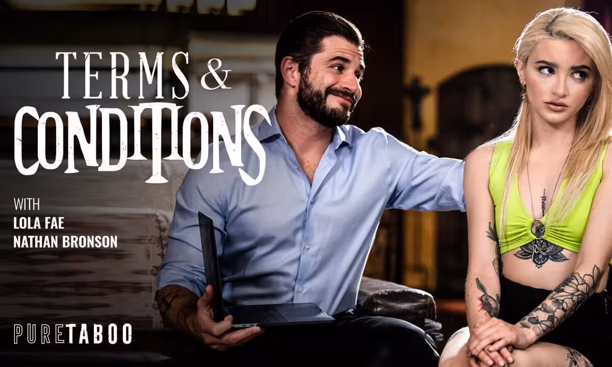Laura (Lola Fae) is surprised when a representative, Fred (Nathan Bronson), from a dating site she recently subscribed to shows up at her door. Although she tries to shoo him away, Fred insists that he needs to talk to her, so he's allowed inside. That's when Fred explains that the 'terms and conditions' that Laura signed when registering for the dating site included a clause that grants him free use of her body at any time.