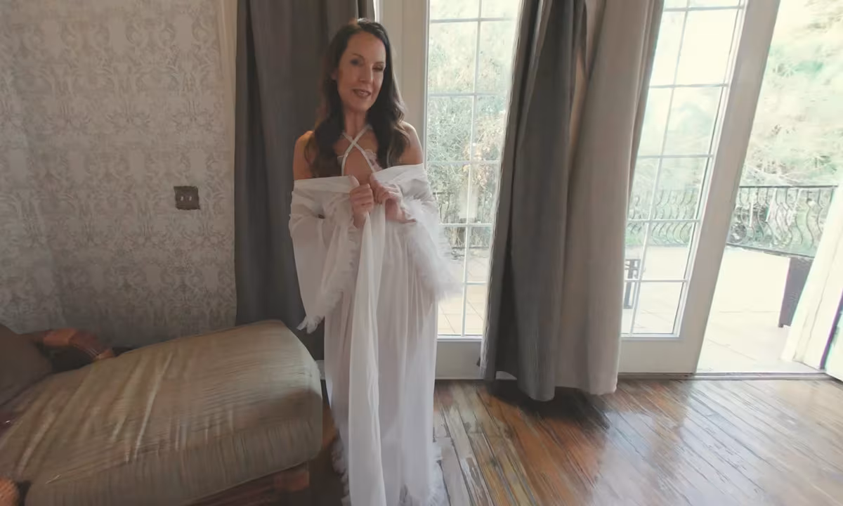 You've been chilling on the patio and your stepmom didn't realize you were out there... or did she? How could she not notice that the door was left open? Well today is your lucky day because she invites you in to watch her play with a new toy. I think she has a thing for you and maybe next time she will let you join in.