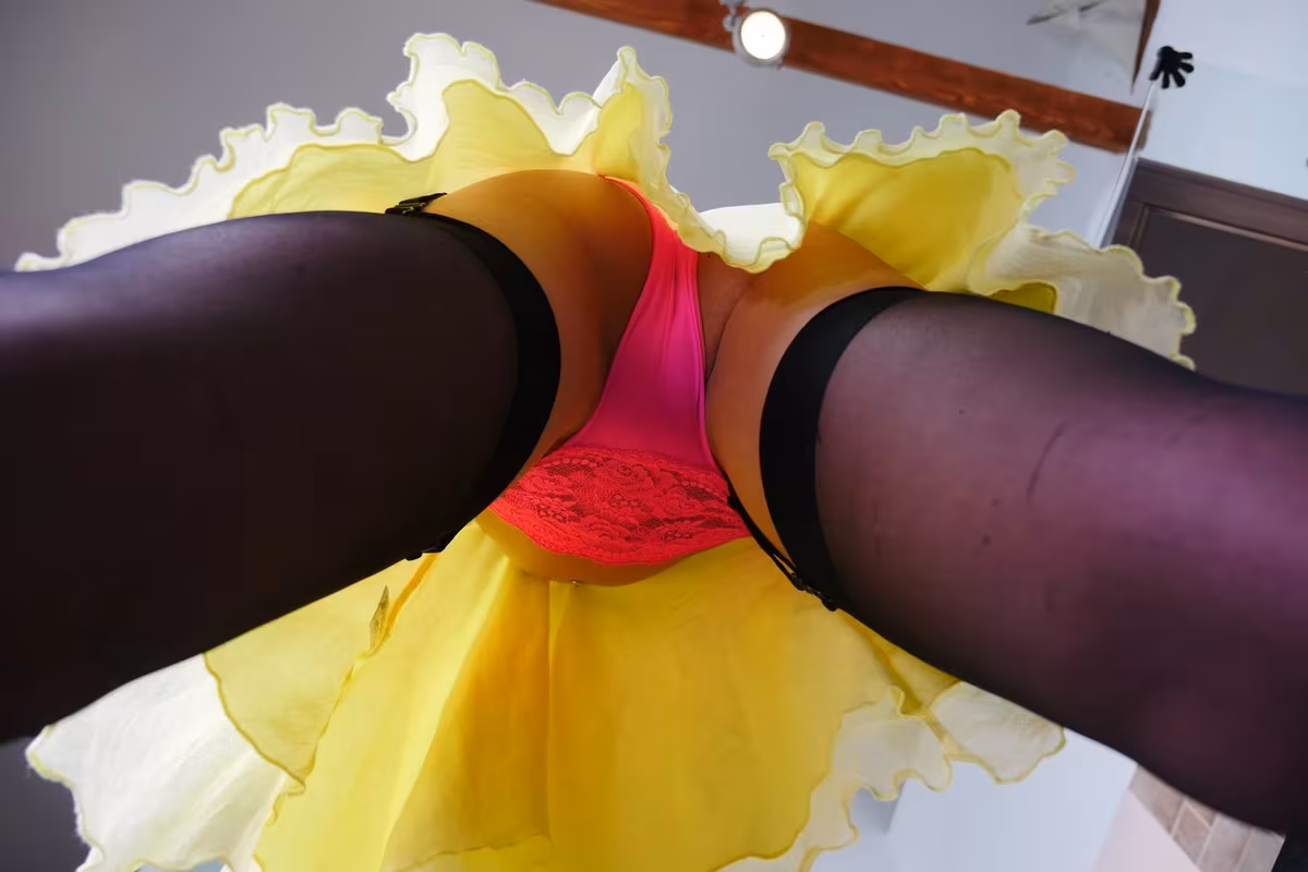Ever see a hot girl walking down the street in a short dress and wonder what she has on under it? Vinna Reed satisfies that curiosity when she lets you lay on her kitchen floor while she walks around in a short dress and some thigh high stockings. Bending over, she flashes her ass in her pink panties then she stands over you, letting you get a perfect upskirt shot that shows you her panties and stockings in all their glory then she asks if you would like her to sit on your face!