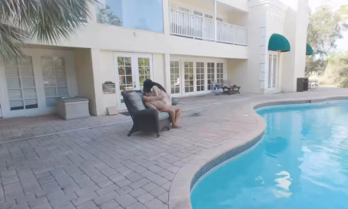 There I was just minding my business cleaning the pool when Jess B struts her stuff past me. Bradley snow was sitting out enjoying some sun while I did my thing. Well she decided that she wanted some of that BBC, unbothered by me still being there. He quickly lets me know that I can watch and get as close as I want, but I can't touch. I get to see him give her a good cream pie finish.