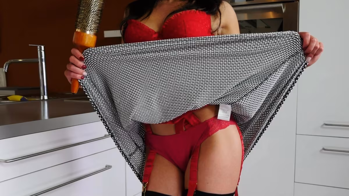 Lola was doing her hair as she got ready to go out when she started feeling a little horny so she pulled her top down and let her big tits spring out. After taking off her skirt, she pulled her panties down and rubbed her pussy while sucking on the handle of the hair brush like it was a cock. She badly needed to cum so she bent over and eased the hairbrush handle into her pussy, fucking herself with it and starting here evening with a knee-buckling orgasm.