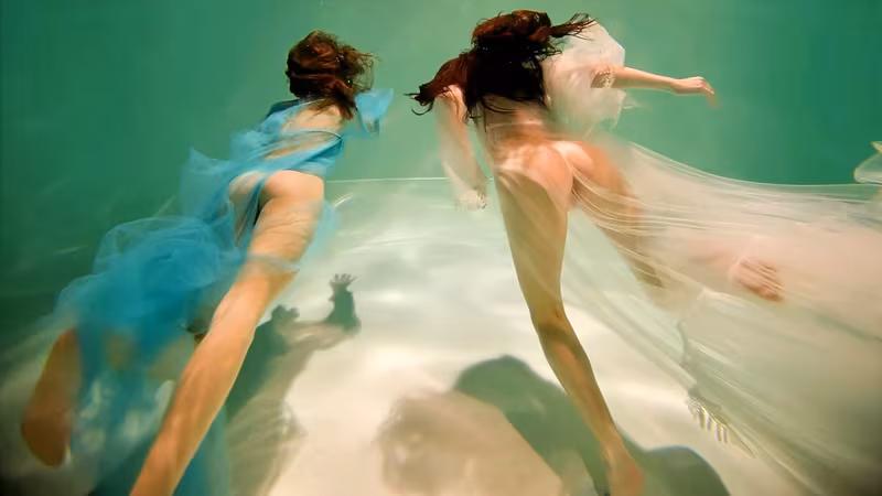 Nothing Extraordinary, Just Two Young Beauties Swimming In Transparent Dresses Underwater :)