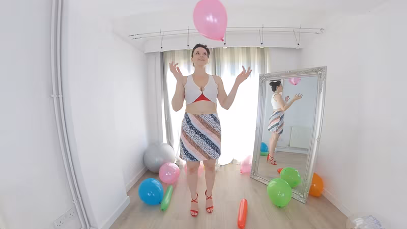 Well... that's one way to clean up after the party! Ivy Rain is all into "looning" and she wants to show you what it's all about when she helps you clean up the morning after a wild party. You've got some wicked sights to see with this beautiful brunette amateur in red high heels doing some of the wildest things you've ever seen with a balloon - and all in virtual reality as you're right there in the room with her! Hot amateur action is just a click away with studio JimmyDraws and SexLikeReal.