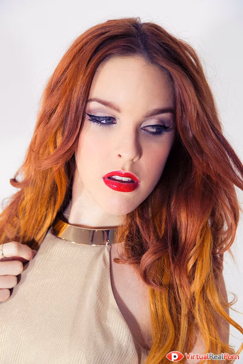 You and your glamorous VR wife, Amarna Miller, are about to go out when you both feel a little horny. Amarna is wearing a beautiful cocktail dress that highlights her voluptuous body. You can't help but feel aroused as you see this redhead beauty. Luckily, Amarna also feels a little horny. Without wasting any moments, she makes her move. Amarna gives you a blowjob before riding you in a cowgirl position. She doesn't even bother removing her dress. Amarna knows that you don't have enough time, so she quickly grinds her body against yours until you give her a deep creampie.